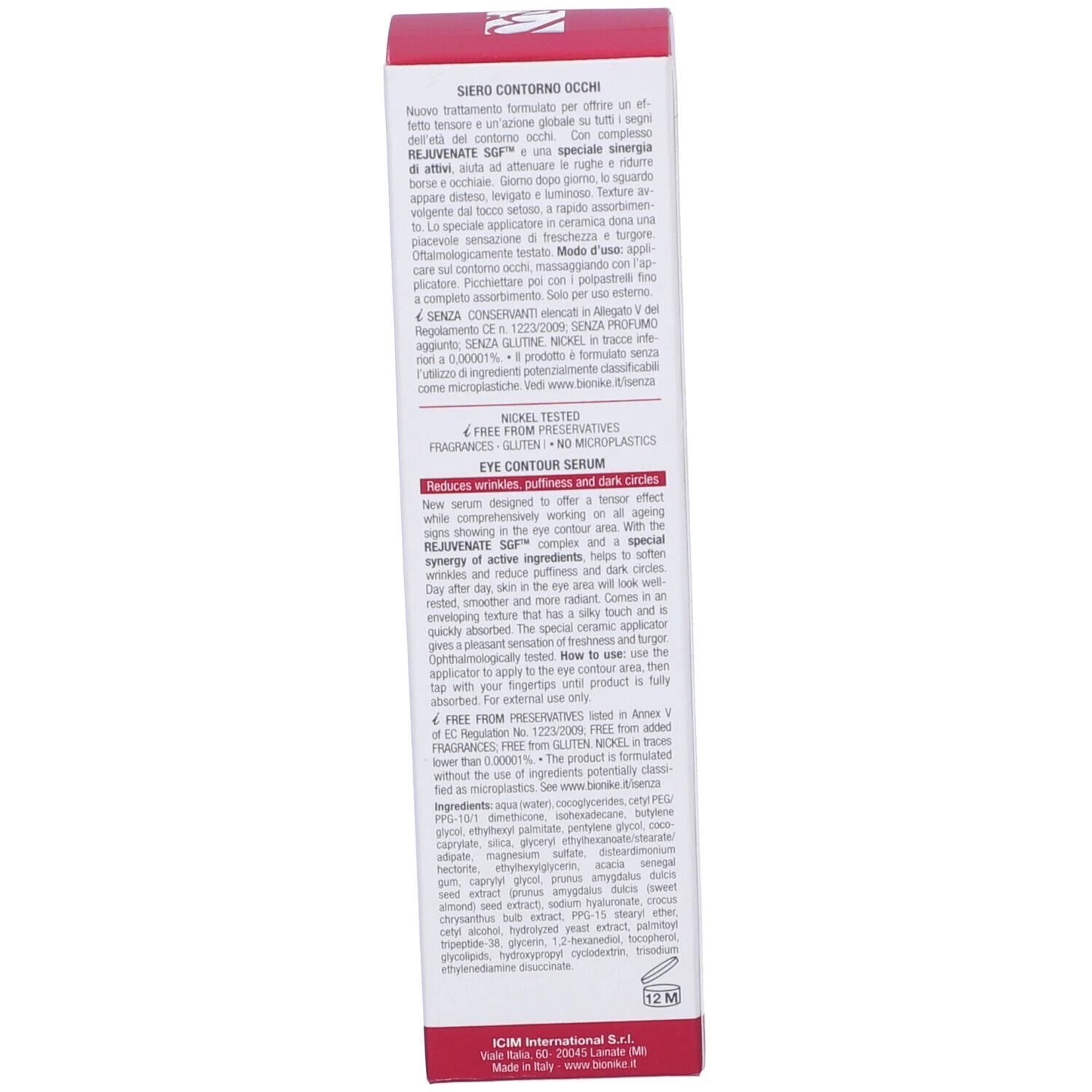 Dalla texture fondente e di rapido assorbimento, combina un immediato effetto tensore con un’azione globale su tutti i segni dell’età del contorno occhi. Grazie all’esclusivo complesso Rejuvenate SGF™ associato ad estratto di Plankton, aiuta ad attenuare le rughe e ridurre borse e occhiaie. Giorno dopo giorno lo sguardo appare più giovane, fresco e luminoso. Testato oftalmologicamente su occhi sensibili. Adatto anche a chi porta le lenti a contatto.