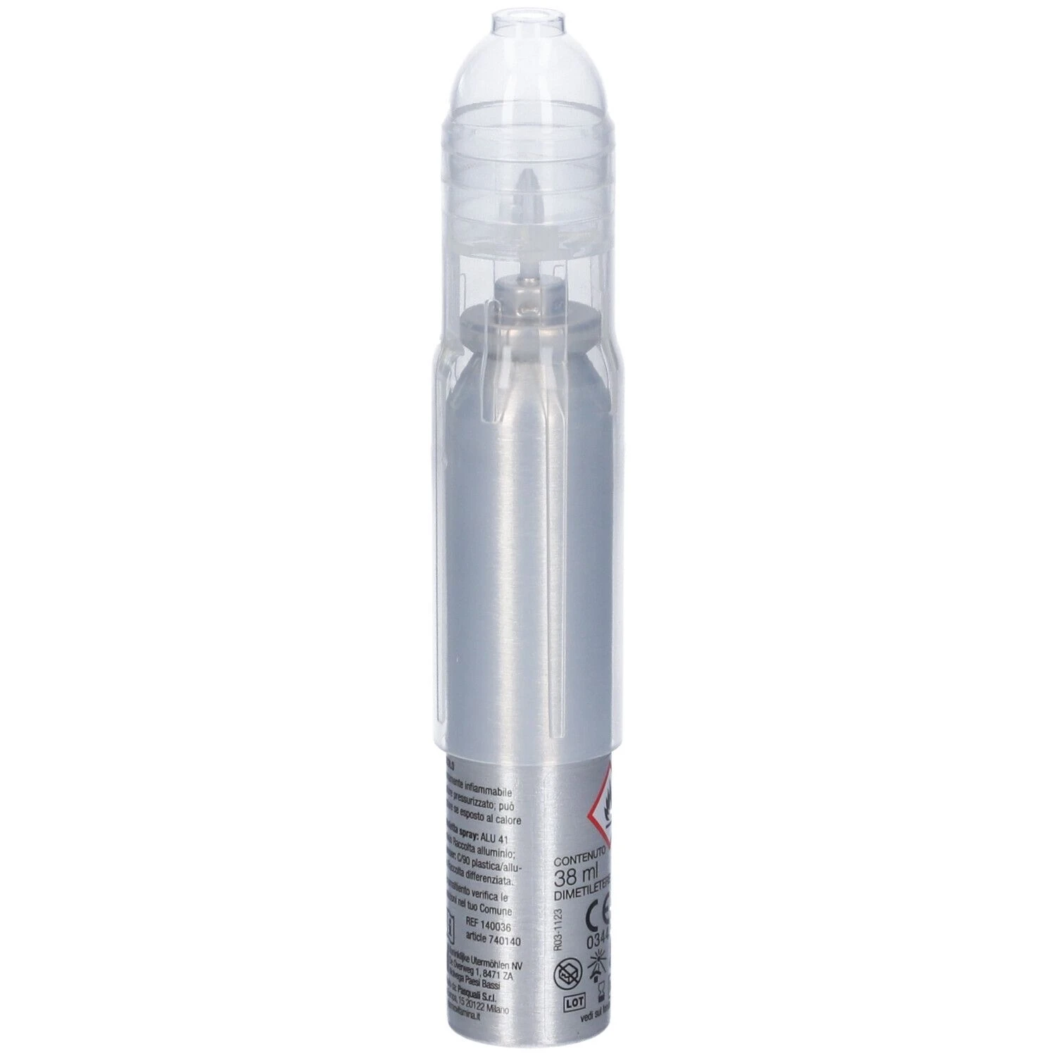 - 1 Rivolgere la verruca verso l’alto. Posizionare l’apertura rotonda del cappuccio applicatore direttamente sopra alla verruca così da circondarla. Assicurarsi che i bordi dell’applicatore siano vicini e ben aderenti alla pelle circostante. Tenere l’erogatore di areosi in posizione verticale con un angolo massimo di 30° affinché il trattamento sia efficace.