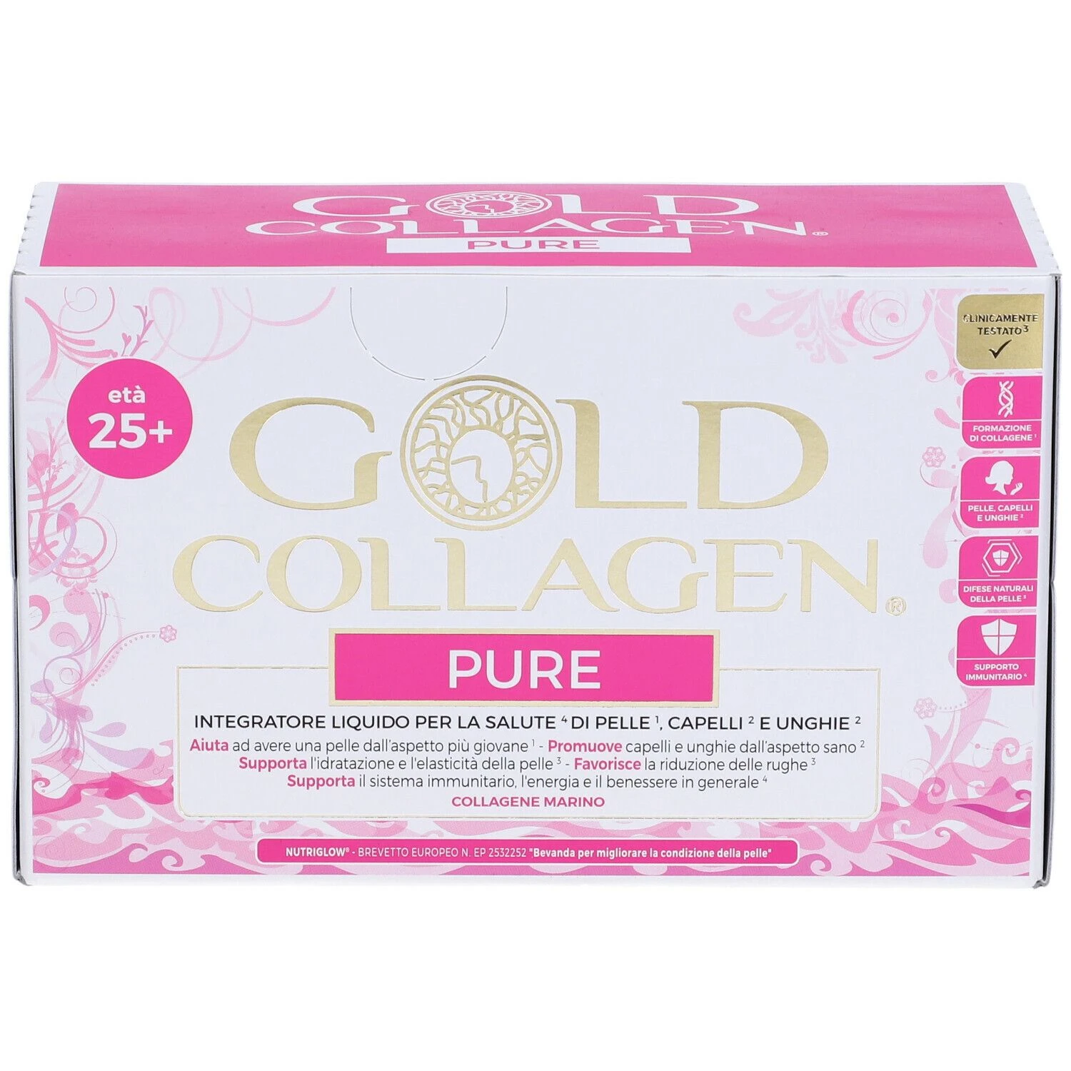 Gold Collagen® Pure è un integratore alimentare di bellezza liquida, formulato appositamente per adulti che desiderano contrastare i segni visibili dell’invecchiamento, migliorando pelle, capelli ed unghie.