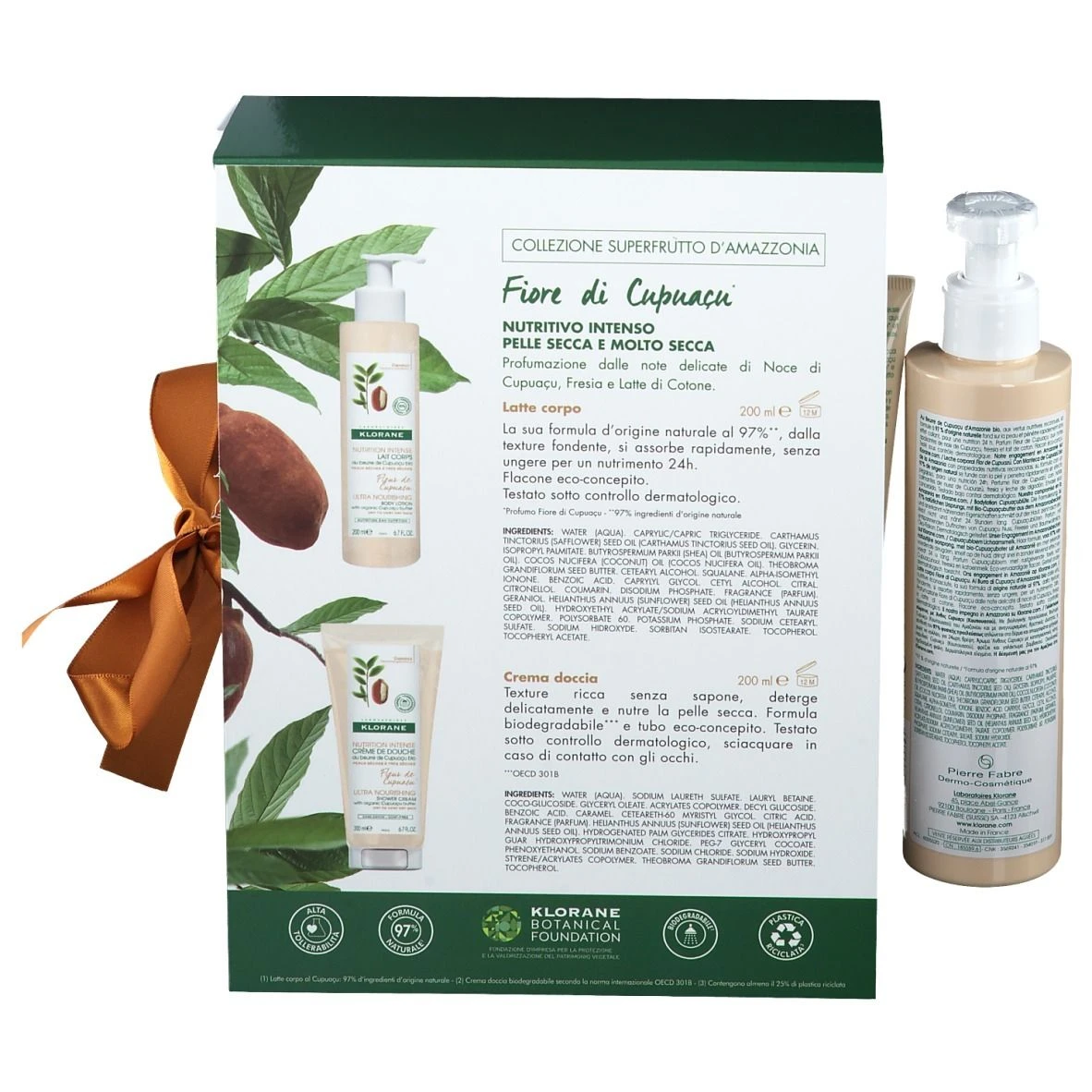 KLORANE Nutrition Intense Crema Doccia: Arricchita con burro di Cupuaçu, questa Crema doccia deterge e nutre le pelli da secche a molto secche già sotto la doccia, grazie a una base lavante delicata senza sapone, arricchita con agenti altamente nutritivi. La sua consistenza cremosa rende la doccia un vero momento di trattamento. Profumazione al Fiore di Cupuaçu, dalle note delicate di noce di Cupuaçu, fresia e latte di cotone.