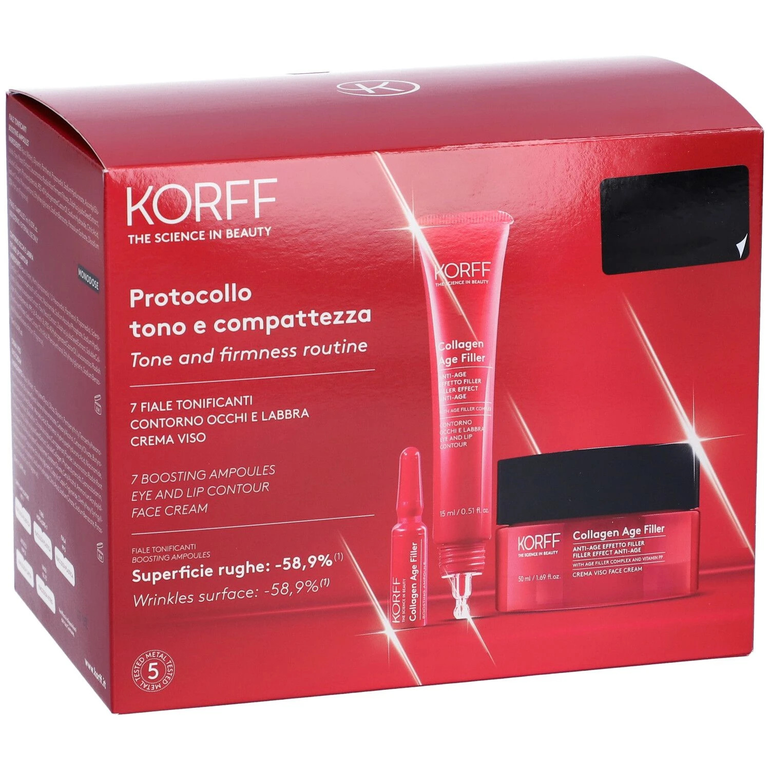 KORFF Protocollo Tono E Compattezza – 7 Fiale Tonificanti + Contorno Occhi E Labbra + Crema Viso