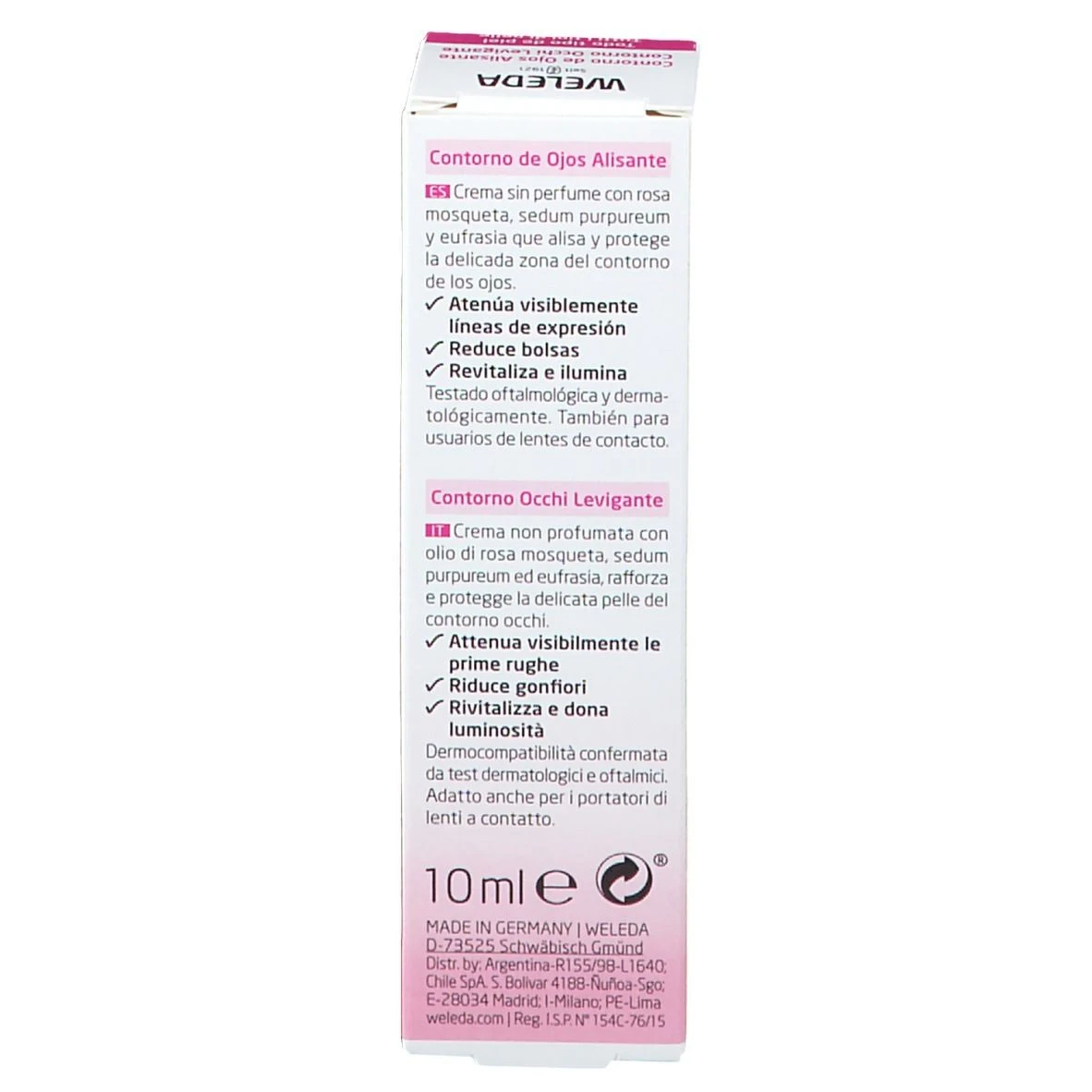Altamente dermocompatibile e adatto a chi fa uso di lenti a contatto. Dermatologicamente testato. Preziosa formula non profumata a base di olio di rosa mosqueta, sedum purpureum e eufrasia, rafforza e protegge la delicata pelle del contorno occhi.